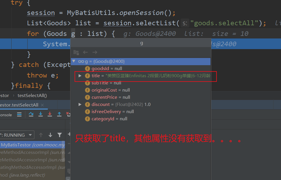 这是因为,在Goods实体类的属性和t_goods表的字段中,只有title是完全相同的。
