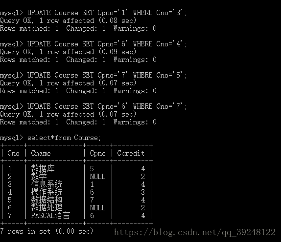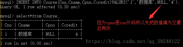 FOREIGN KEY(Cpno)REFERENCES Course(Cno)/*表级完整性约束条件,Cpno是外码,被参照表是Course,被参照列是Cno*/