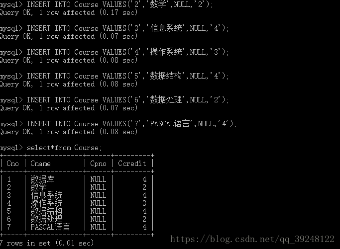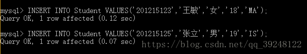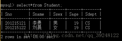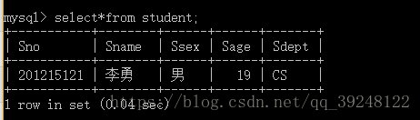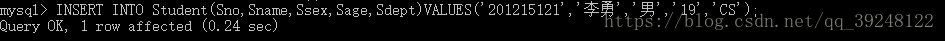 INSERT INTO Student(Sno,Sname,Ssex,Sage,Sdept)VALUES('201215121','李勇','男','19','CS');