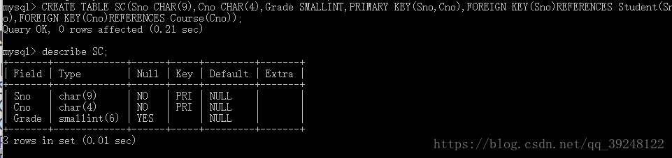 CREATE TABLE SC(