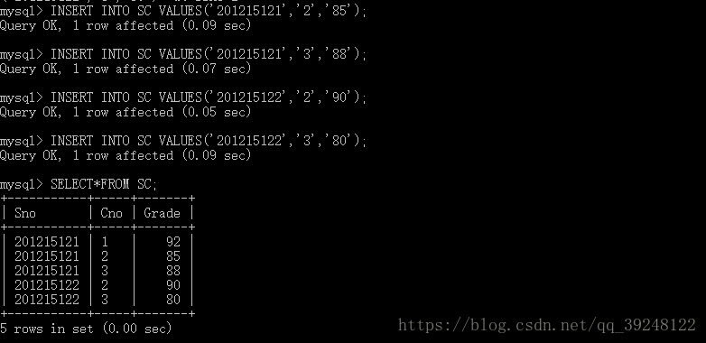 | 学号(Sno) | 课程号(Cno) | 成绩(Grade) |