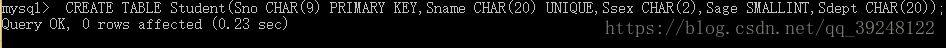 Sname CHAR(20) UNIQUE,/*Sname取唯一值*/