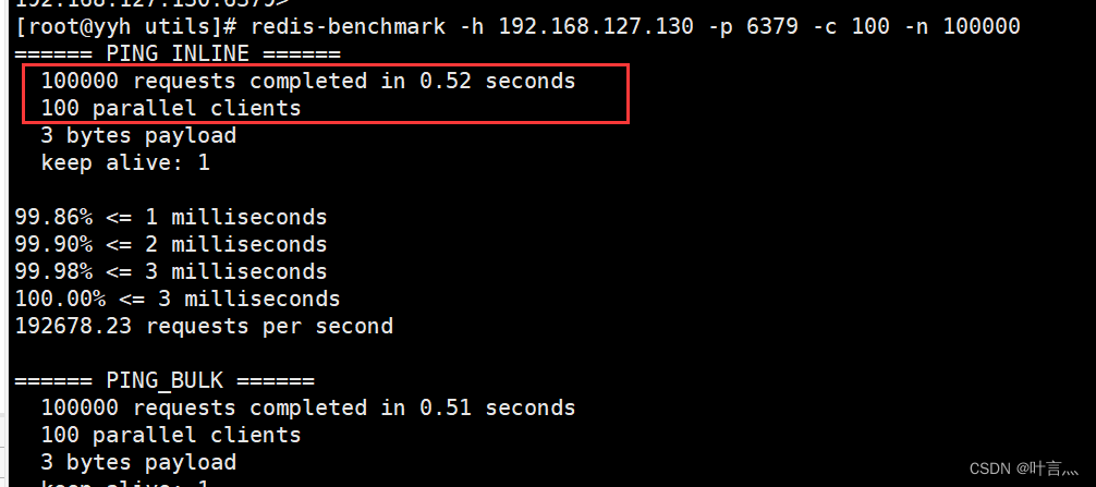 redis-benchmark -h 192.168.127.130 -p 6379 -c 100 -n 100000