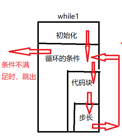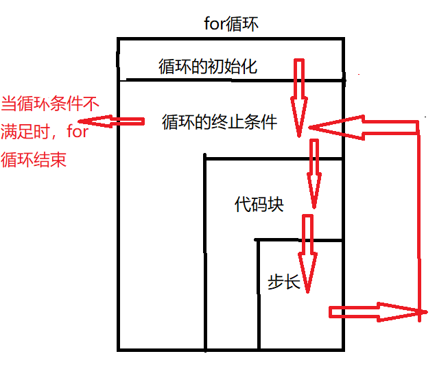 for(1循环的初始化 ; 2循环的继续条件 ; 4循环的步长 ){