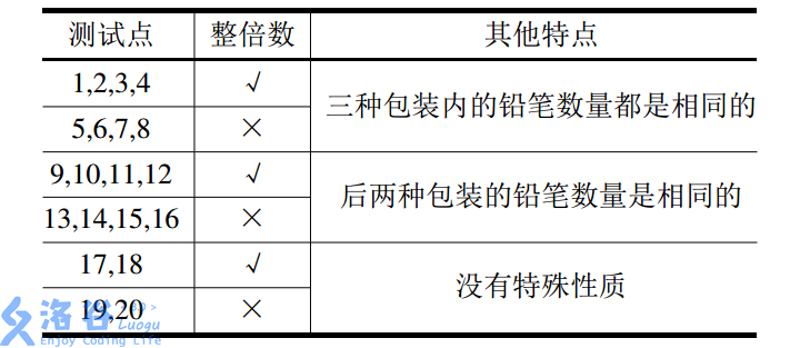 上表中“整倍数”的意义为:若为 K K K,表示对应数据所需要的铅笔数量 n n n —定是每种包装铅笔数量的整倍数(这意味着一定可以不用多买铅笔)。