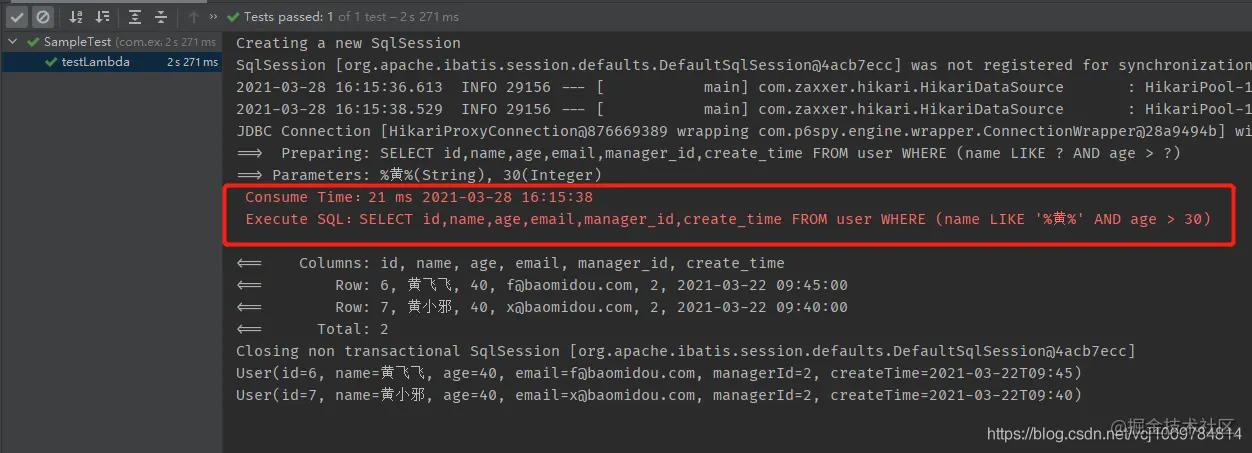 随便运行一个测试用例,可以看到该SQL的执行时长被记录了下来