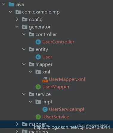 IServicepackage com.example.mp.service; import com.baomidou.mybatisplus.extension.service.IService; import com.example.mp.po.User; public interface UserService extends IService<User> { } 复制代码 -