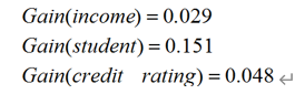 因此,属性income最好的二分法是按照{low,medium}和{high}来分