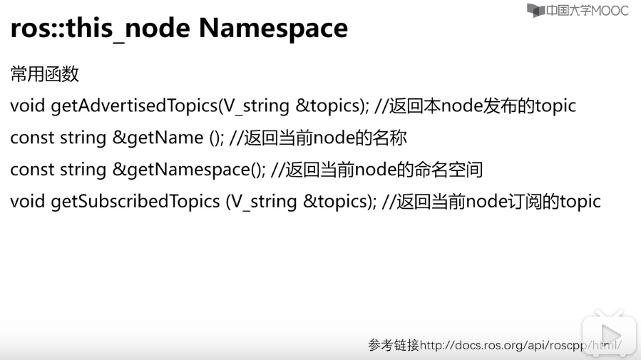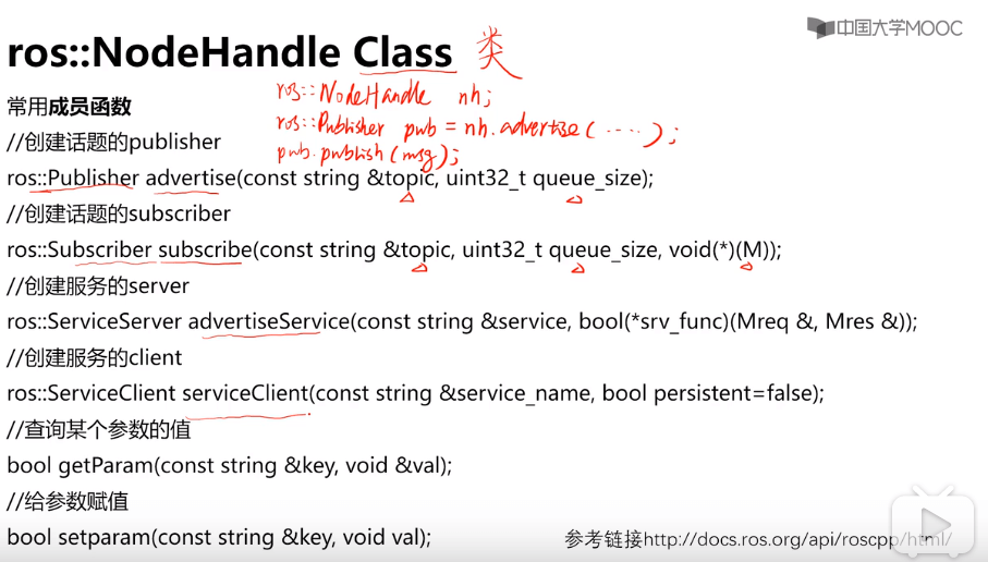 roscpp常用函数如下: