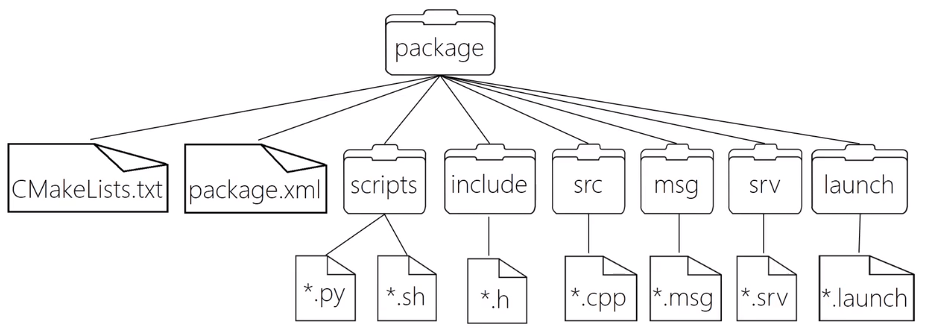 中文可叫做功能包,是ROS软件的基本组织形式,是Catkin的基本编译单元。一个package可以包含多个可执行文件(节点)。Package的完整结构如下: