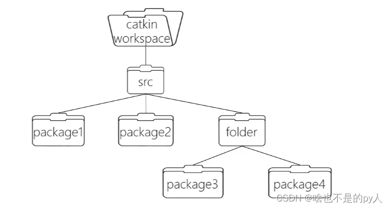 Catkin(中文意思为柳絮))是ROS定制的编译构建系统,是对CMake的扩展。Catkin Workspace则是组织和管理package的文件夹,组织结构如下所示。