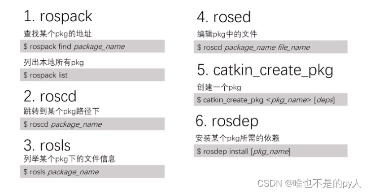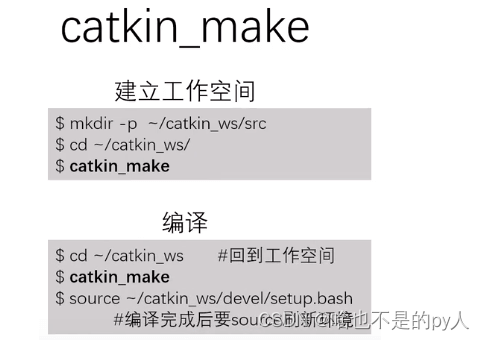 catkin_make用于初始化创建空间以及编译项目(常用),基本操作命令如下。