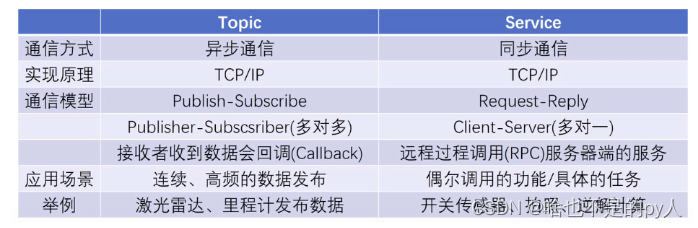 Topic和Service的对比:
