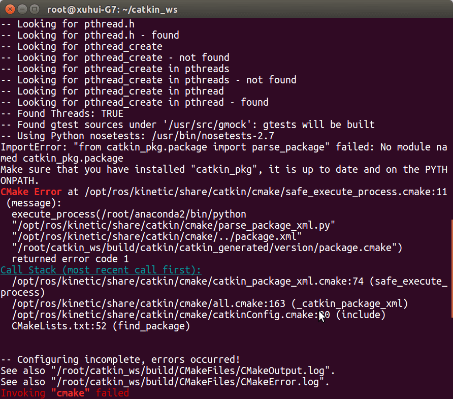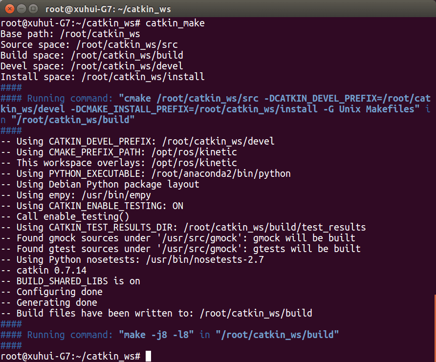提示找不到包,这时候pip install catkin_pkg安装一下就好了。建好的工作空间终端输出如下。