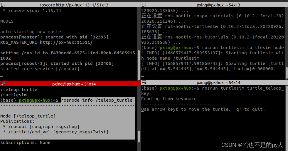在ROS中,所有的Node都是通过Master管理的,因此如果想启动一个Node,必须先要启动Master(roscore)然后再启动节点(rosrun)。