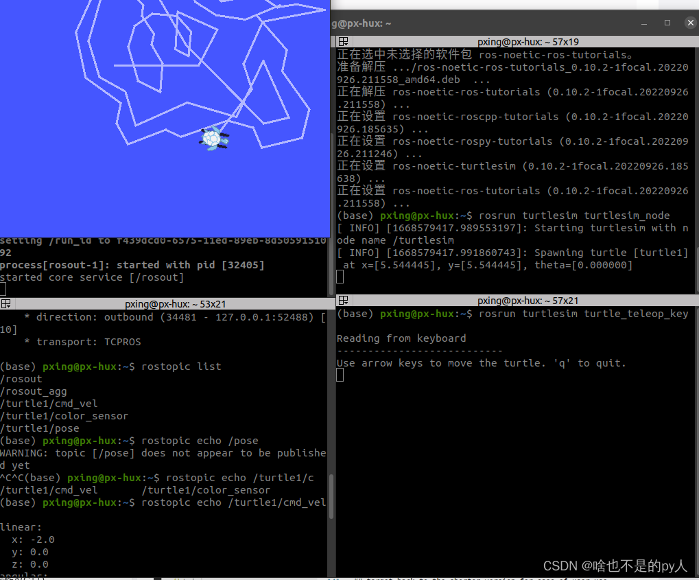 上图是运动小乌龟的时候echo出来的消息