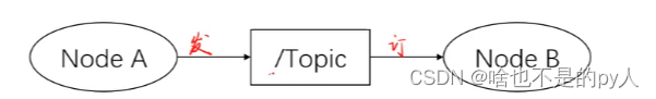 Topic:ROS中的异步通信方式,可以看作是一个“频道”,Node之间通过publish-subscribe机制通信,如下所示。