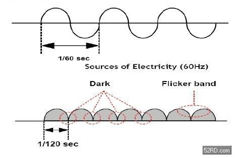 为了避免flicker,必须满足每一行获取的能量是交流电能量周期的整数倍,否则会应为获取的能量不一致,导致水波纹现象的产生。即: