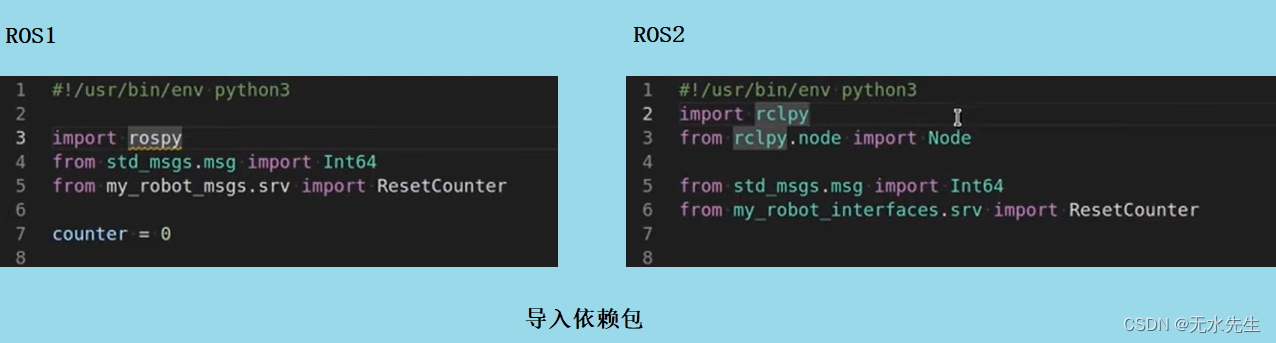 以下我们从实现“number”题目的程序为例,看ros1和ros2的代码区别是什么。