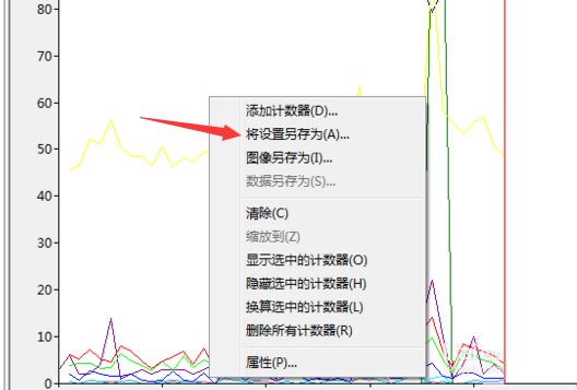 1、在性能监视器中的进行右键的方式,弹出了下来菜单中进行选择为“将设置另存为”