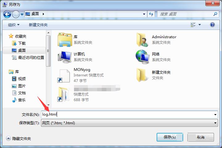 2、然后进行输入文件名的名称中例如为log.html即可