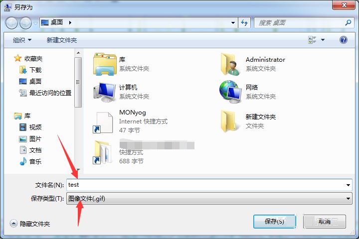 5、然后为在文件名中进行输入为test即可,保存类型为图像文件