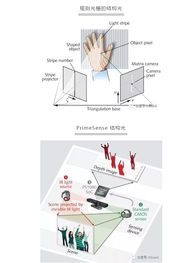 “结构光”指一些具有特定模式的光,其模式图案可以是点、线、面等。结构光3D 成像的原理是首先将结构光投射至物体表面,再使用摄像机接收该物体表面反射的结构光图案,由于接收图案必会因物体的立体型状而发生变形,故可以试图通过该图案在摄像机上的位置和形变程度来计算物体表面的空间信息。