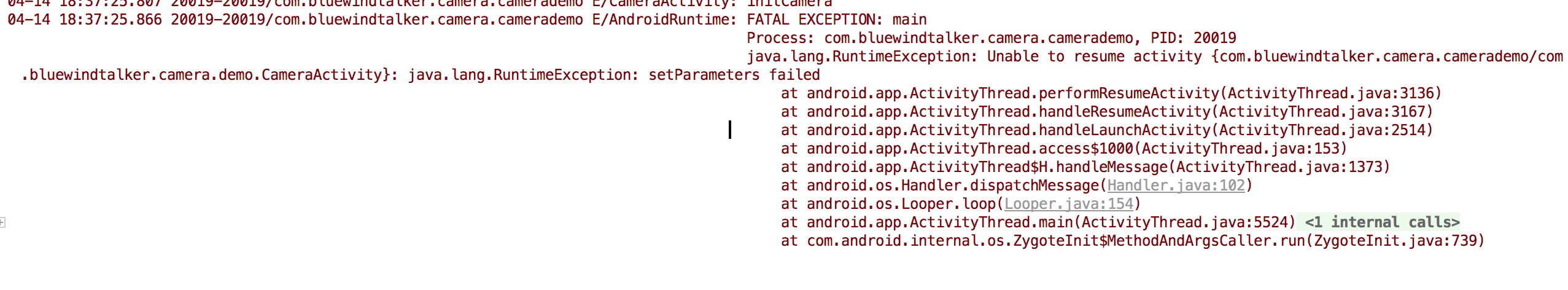不能将宽高随意写,必须从 parameters.getSupportedPictureSizes(); 中选择最合适的宽高,否则会出现setParameters failed的运行时错误。