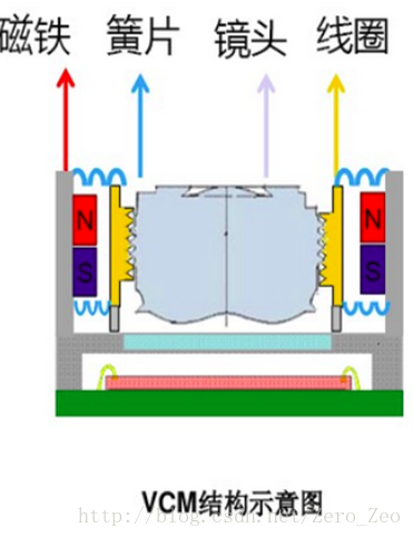 我把他剖析出来,您就可以清晰的看到一个关键点,这个马达长得有点怪,如果高中学过电磁感应的话,就会明白,线圈通电会产生磁场,流经磁场的电流大小可以推动如图中的镜头进行向前或者向后的移动。这就形成一个简易的马达,这种结构叫做VCM(Voice Coil Actuator/ Voice Coil Moto),这个过程将电能转换成了机械能。