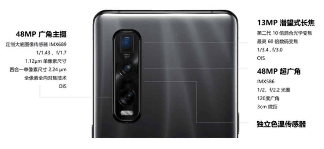 在三摄已经成了及格线,四摄、五摄层出不穷的今天,OPPO Find X2Pro虽然只配备三颗成像镜头,但每颗镜头素质都十分出众。主摄是从索尼全新定制的4800万像素的索尼IMX689传感器,拥有全新升级的1/1.4英寸大底,能够帮助相机捕捉到更多的画面细节。副摄超广角则是去年的旗舰传感器IMX586,业界唯一可以直出4800万像素的超广角照片,能够帮助相机装下更多画面内容。第三颗摄像头则是一颗1300万像素潜望式的长焦镜头,支持第二代10倍混合变焦技术,60倍数码变焦。