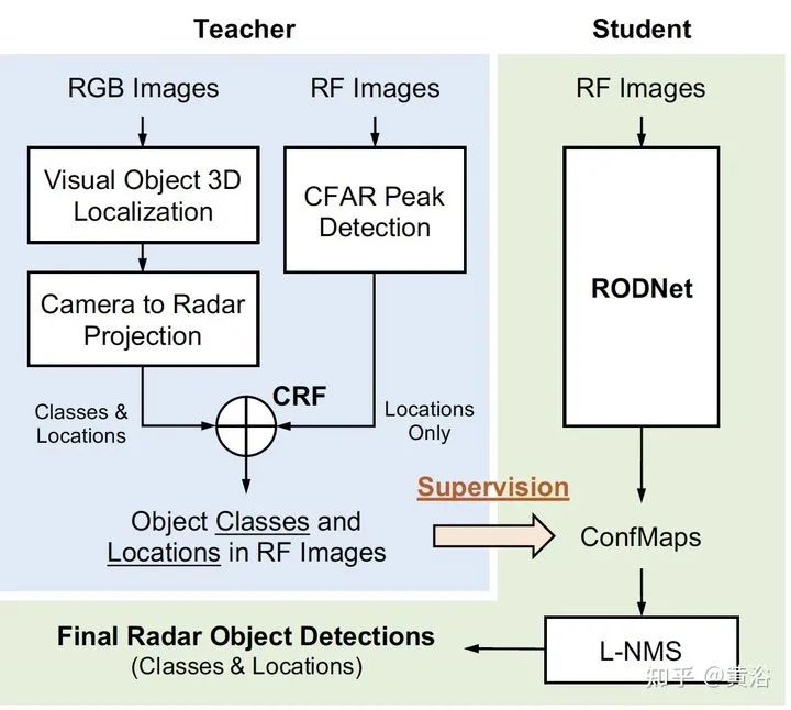 cross-modal supervision pipeline for radar object detection in a teacher-student platform