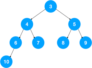 一般搜索引擎都会有专门的日志来记录用户的搜索词,我们用用户的这些搜索词来构建一颗 Trie 树,但要稍微对 Trie 树进行一下改造,上文提到,Trie 树实现的时候,可以在节点中设置一个标志,用来标记该结点处是否构成一个单词,也可以把这个标志改成以节点为终止字符的搜索字符串个数,每个搜索字符串在 Trie 树遍历,在遍历的最后一个结点上把字符串个数加 1,即可统计出每个字符串被搜索了多少次(根节点到结点经过的路径即为搜索字符串),然后我们再维护一个有 10 个节点的小顶堆(堆顶元素比所有其他元素值都小,如下图示)