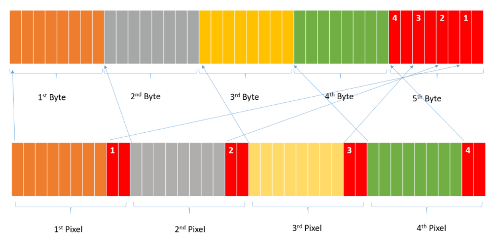 b1,b2,b3,b4,b5分别为连续读出的五个uint8类型的数据,p1,p2,p3,p4为四个像素点的像素值,那么