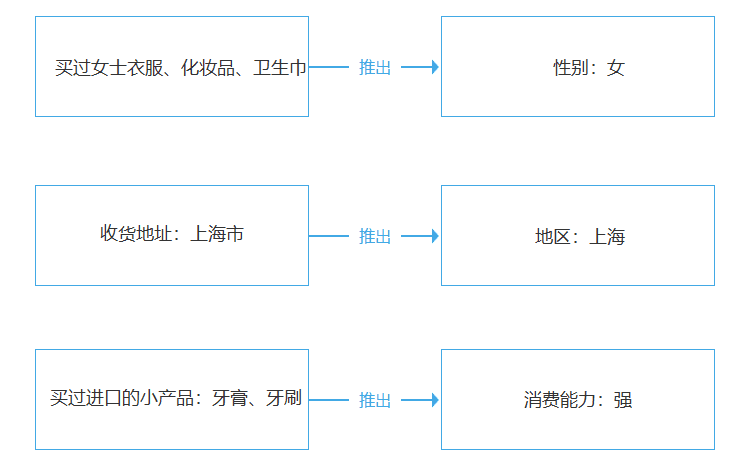 假设大部分人买东西是给自己买,收货地址是上海市的,我们可以推算出此用户是上海市的。