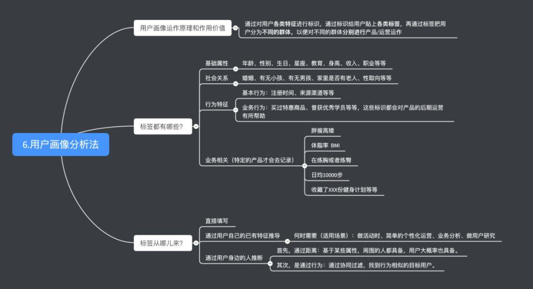 用户画像是通过对用户各类特征进行标识,通过标识给用户贴上各类标签,再通过标签把用户分为不同的群体,以便对不同的群体分别进行产品/运营运作。