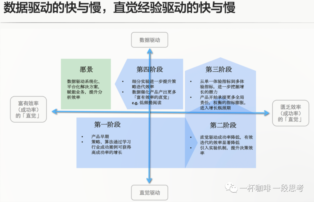 良性的业务发展通常要经历从直觉驱动到数据驱动的过程,本节进一步展开这个过程并讨论不同发展阶段的业务特点与痛点,以及这个阶段数据驱动业务的打法。