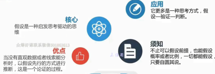 含义:无数据情况下的分析,基于经验支撑,通过假设一定前提下,进行结构化分析,论证假设为真/假