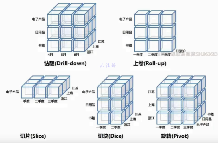 解决方法:钻取——对数据分析粒度更细,规避悖论;上卷;切片;切块;旋转