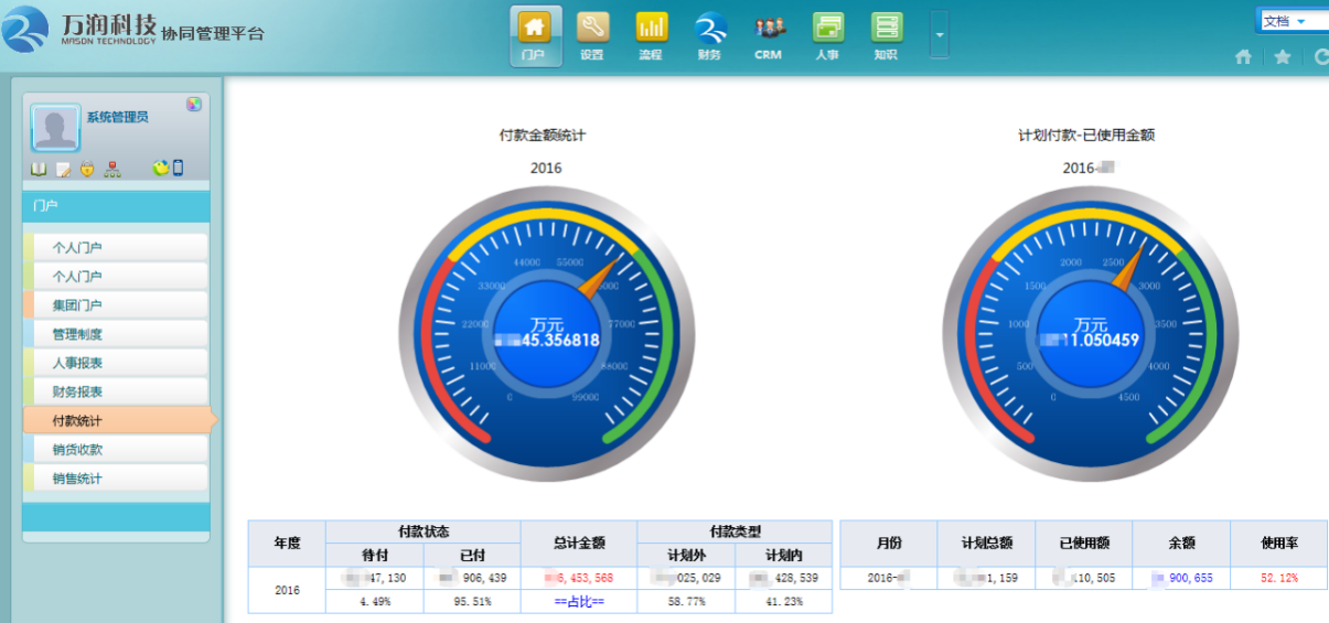 OA是我们使用的最频繁的一个办公软件。通过帆软报表做的一个门户报表系统,把所有报表集成在OA里面,提供给高层人员一个快捷方便的决策参考依据。