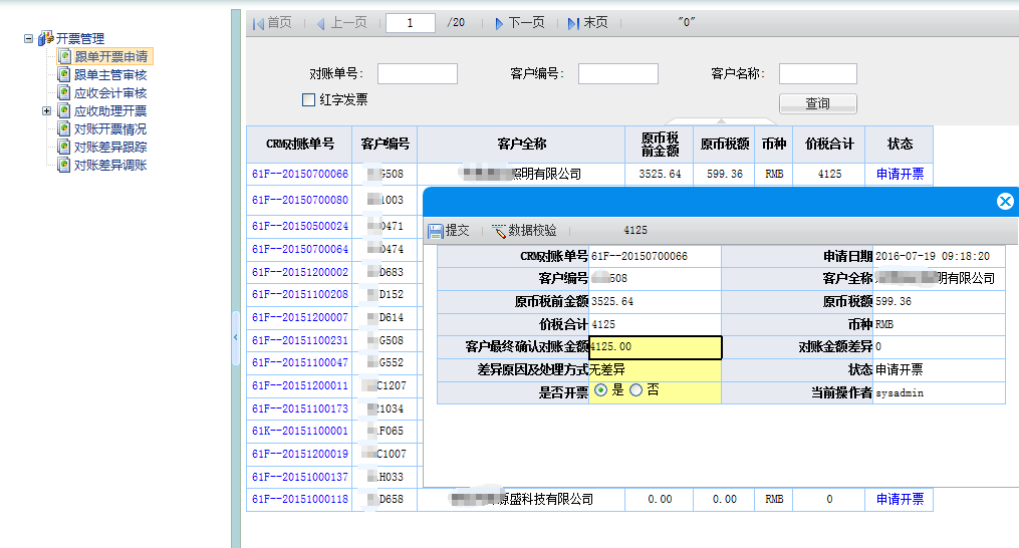 在实际应用过程中,我们利用帆软报表工具能从系统中抓取一些相互有关联数据的特性,整合在一个系统中。比如说我们把它做一个功能列表,它就可以把对账系统、应收以及开票的信息都展示在这里,然后通过帆软报表工具的一些填报功能,将需要开票的一些申请,直接通过填报功能去操作,上级人员对他的需求进行一个审核,然后进入到财务决策的审核。所有的步骤都流程化,对应的操作可以通过操作日志展示出来。