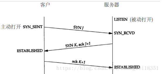 ⑤该报文中SYN标志为1,产生一个随机数k,ack标志位j+1,表示连接请求应答
