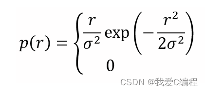 瑞利分布是一个均值为0,方差为σ²的平稳窄带高斯过程,其包络的一维分布是瑞利分布。其表达式及概率密度如图所示。瑞利分布是最常见的用于描述平坦衰落信号接收包络或独立多径分量接受包络统计时变特性的一种分布类型。两个正交高斯噪声信号之和的包络服从瑞利分布。