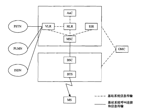 一套完整的蜂窝无线通信系统通常由交换子系统( NSS , Network Switched Subsystem )、基站子系统( BSS . Base Station Subsystem ) 、移动台( MS , Mobile Station )以及操作维护中心( OMC ,Operations & Maintenance Center )构成。
