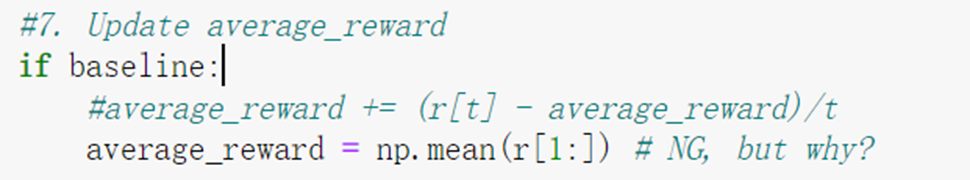 在以上仿真试验中发现一个小小的异常现象,average_reward的计算方法的一个小小微调对结果产生相当显著的影响: