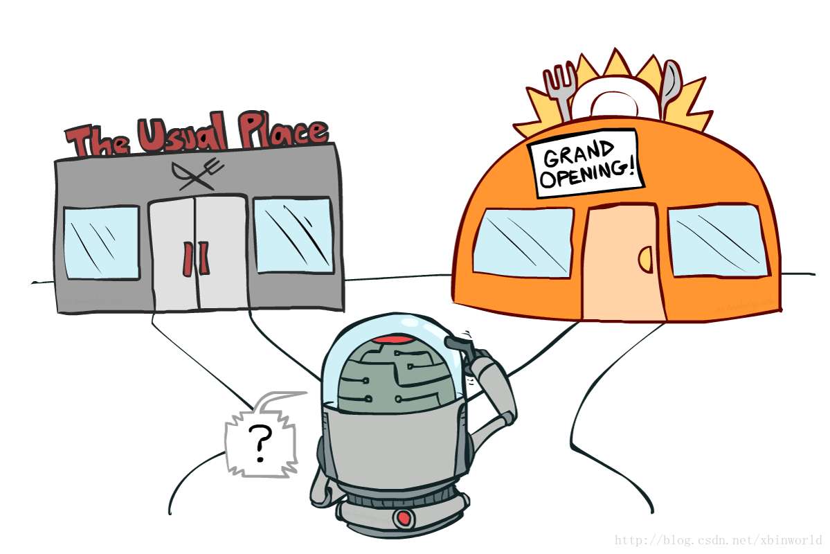 所谓探索:是指做你以前从来没有做过的事情,以期望获得更高的回报。所谓利用:是指做你当前知道的能产生最大回报的事情。那么,你到底该去哪家呢?这就是探索-利用困境。