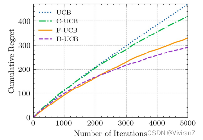 下面的遗憾分析表明,F-UCB的遗憾边界比D-UCB的遗憾边界要大,正如预期的那样,它仍然受到集合W的域大小的影响。