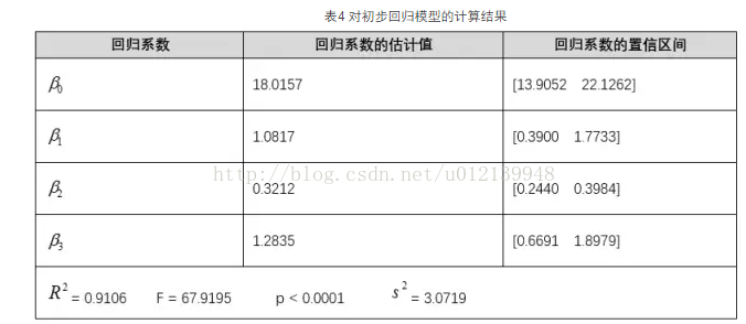 表4 对初步回归模型的计算结果
