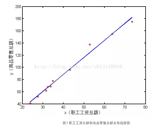 xlabel('x(职工工资总额)','fontsize', 12) %横坐标名