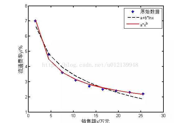 legend('原始数据','a+b*lnx','a*x^b')