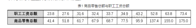 表1 商品零售总额与职工工资总额